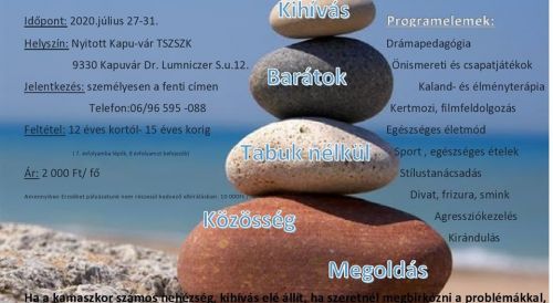 Kapuvár TáborokKamaszok az úton napközis tábor ...... Sok téma, sok kérdés, sok megoldás, sok élmény. Ez egy gyors döntés.... jelentkezési határidő PÉNTEK!!!